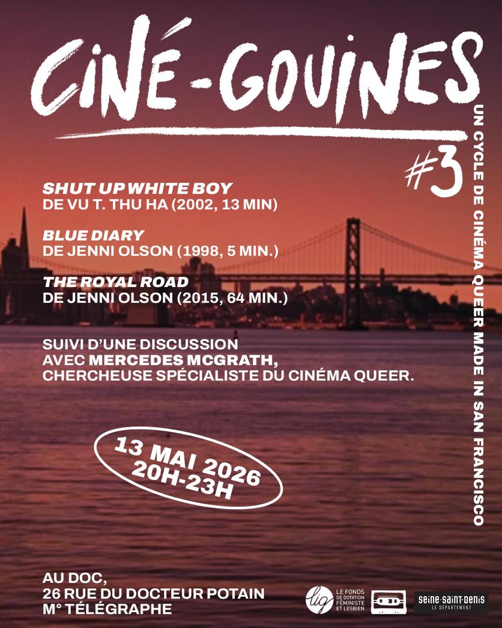 2026 Ciné-Gouines #3, Au Doc, Paris, France, (Wednesday May 13th, 8-11pm)